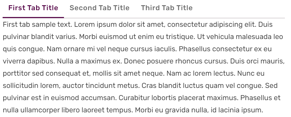 <tabber>Ensimmäisen välilehden otsikko=Ensimmäisen välilehden esimerkkitekstiä. |-|Toisen välilehden otsikko=Toisen välilehden sisältö tulee tähän. |-|Kolmannen välilehden otsikko=Kolmannen välilehden sisältö tulee tähän. </tabber>