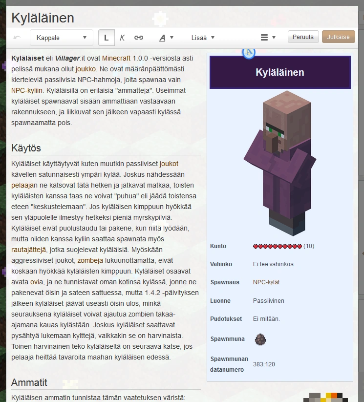 Voit tarkastella ja muokata sivun wikitekstiä valitsemalla työkalupalkin